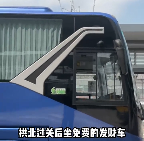 ▲教路在拱北口岸过关后乘坐免费的“发财车”。