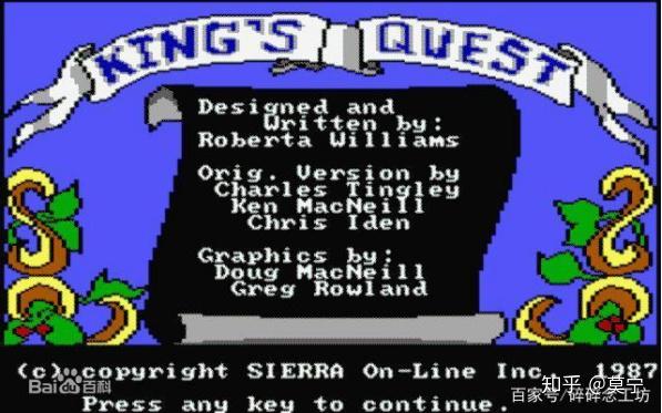 既然AVG游戏已经发展成型,那么它投入商业运作的时机也成熟了。时间来到1984年,还是这对夫妻,在游戏商Sierra的投资下制作了一款相当着名的电脑游戏《King's Quest(国王密使)》[6]。