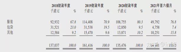 其中,服装(也就是女装)品类占了大头,2018-2020三个年度与2021上半年的份额分别是67.8%、70.9%、80.3%和76.8%,今年上半年收入约人民币4000万元。