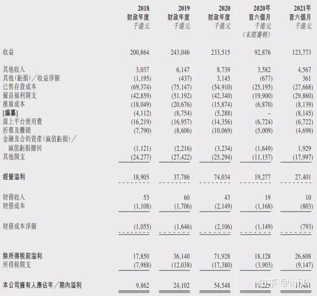 2018-2020三个年度和2021上半年,德盈的收入分别为2.01亿、、2.34亿与1.24亿港元,公司拥有人应占溢利分别为986.2万、、5454.8万和1746.1万港元。