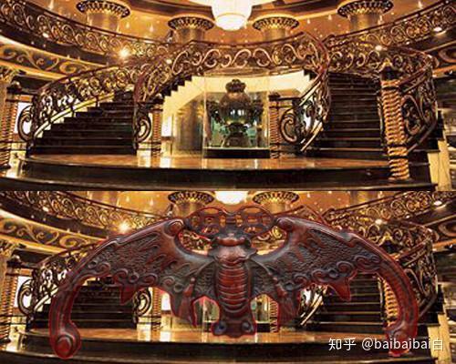 赌场大门上端为“蝠鼠吊金钱”,楼梯设计犹如蝙蝠开口觅食。因为“蝠”字与中国吉祥字“福”谐音,故象征蝙蝠蝠鼠叼金钱。赌厅设计成圆形,当客人走了一两个圈后,极易迷失方向;加上天花刻有海盗船图案,一踏入赌场就好似被海盗洗劫一样。